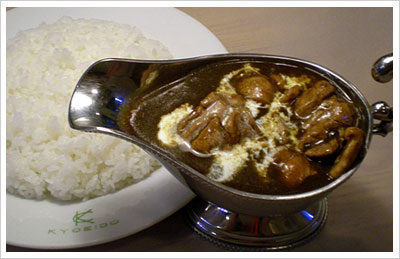 で、行ったのが 「スマトラカレー共栄堂」 大正13年創業の老舗だ。 で、頼んだのがチキンカレー。 1000円もする高級カレーだが、吉野家のようにすぐに運ばれてくるのが、 いいのやら味気ないのやら微妙なところ(笑) スープなんて席に着くと水と一緒に運ばれてきます。 気が早い。。。 でも美味しい。 (写真はHPから拝借いたしました) ちょっと焦がしたような香ばしい味わいで、チキンもごろごろと入っていて満足でした。 個人的にはもう少し辛い方が好きだけど。 しかし、こういうカレーにありつくといつも思うのだが、どうやってもカレーの入っている 器にカレーが残ってしまい、最後にご飯があまってくると、その器から一生懸命 カレーをかき集めるのが面倒くさいし貧乏臭い。 最初からご飯にかけてくれたら、もったいなくないのになあ。。。 今度は「ソース大盛り」にしよう。